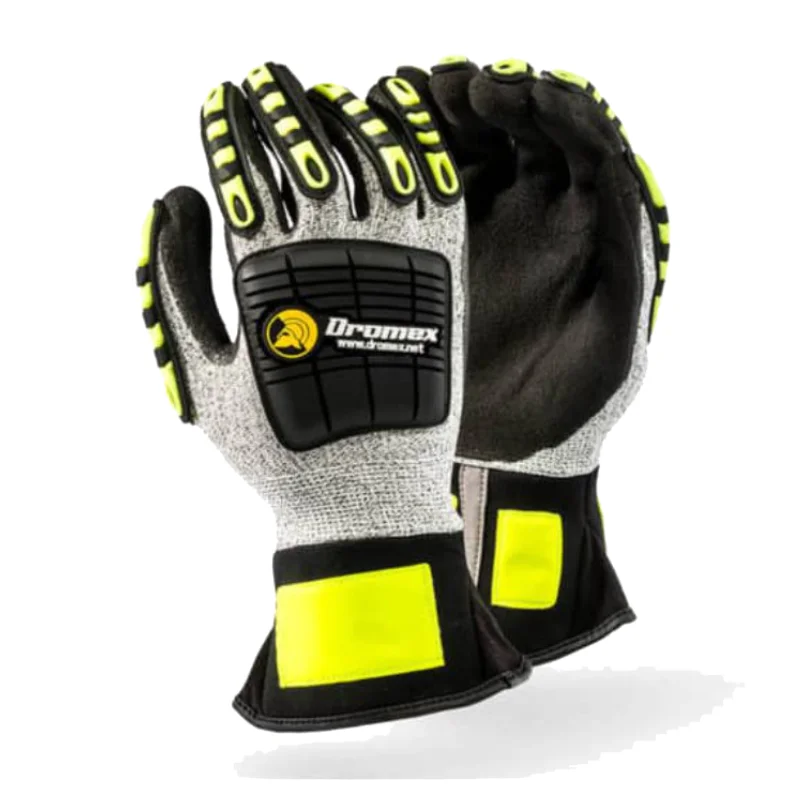Dromex® MACH-777 Nitrile micro foam palm coated, CUT5, high dexterity, high impact absorbing and high visibility mechanical gloves protects the hands against abrasion, cut, and impact with enhanced tear resistance properties.